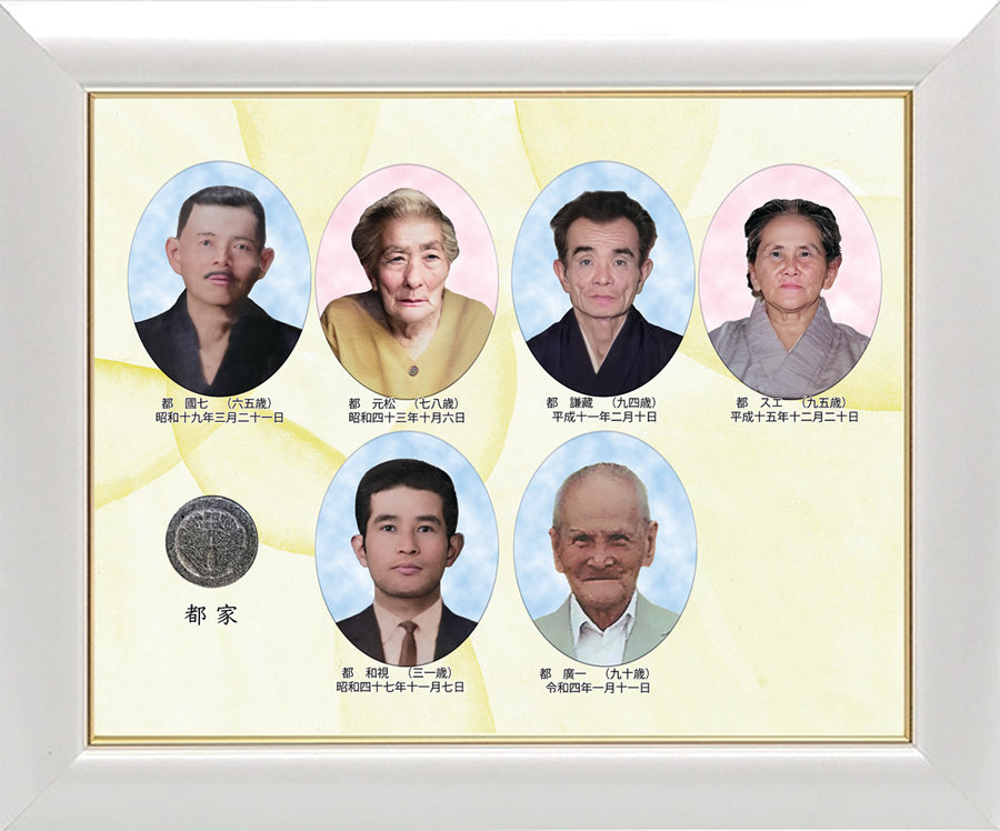 複数のご先祖様の背景やフレームの色をお部屋に合わせて仕上げることで、現在のご自宅になじむ『やさしい1枚』として飾っていただけます。