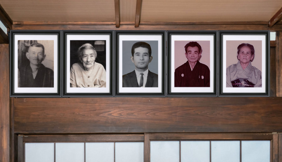 鴨居などに飾られている複数枚の遺影を修正し、コンパクトにまとめることができます!